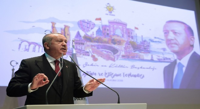 Medeniyetin sembol şehirlerine bakıldığında ceddin sadece inşa etmediğini, ibadet ettiklerini söyleyen Erdoğan, "Tasavvuruna uygun şekilde insan merkezli mekanlar görürüz oralarda. Mimarinin ihtişamı ile manevi derinliğin ve tevazunun aynı anda buluştuğu şehirlerimize yeterince sahip çıkamamış olmamız en büyük kaybımızdır. Medeniyetin maddi unsuru olan mekan ve kültür üretimi konusunda sahip olduğumuz kadim mirasın hala tam olarak farkında olmadığımızı, olamadığımızı düşünüyorum. Son 2 asırda sadece siyasi ve askeri üstünlüğümüzü değil, aynı zamanda medeniyetimizin kainat tasavvurunu, kültürümüzün mayasını, şehirlerimizin ruhunu da kaybettik. Batı medeniyetinin insan fıtratı yerine bireysel hırsı esas alan anlayışı, üstelik de her türlü estetikten, güzellikten mahrum bir şekilde ülkemizi işgal ettiğini görüyoruz. Her alanda küresel düzeyde yaşanan tekdüzeleşme, gücünü farklılıklarımızdan alan zenginliğimizi önemli ölçüde ortadan kaldırdı. Eskiden her biri diğerinden güzel eserlerimizle donatarak, içinde ruhumuzu özgür bıraktığımız yerler daha sonra çirkinliklerin kuşatması altında sadece ruhumuzun değil, bedenimizin de zindanlarına dönüştü" ifadelerini kullandı.