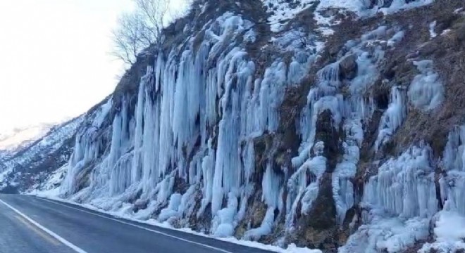 Tunceli-Pülümür-Erzincan karayolu üzerinde bulunan Ağlayan Kayalar, hava sıcaklıklarının düşmesiyle birlikte buz tutarken, ortaya çıkan manzara görsel şölen oluşturdu.