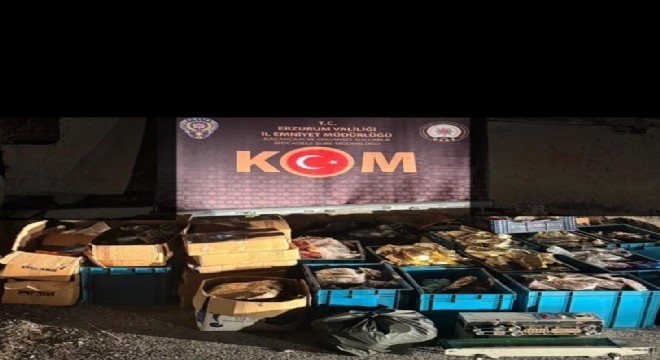 Erzurum’da polis yaptığı operasyonda depo görünümlü yerde 1 ton 798 kg nargile tütünü ele geçirdi.