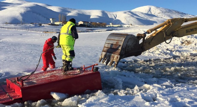 Bingöl’ün Karlıova ilçesinde donan barajın buzların kırılması sonucu suya gömülen paletli araç, ekiplerin 10 saatlik çalışması sonucu kurtarılabildi.
