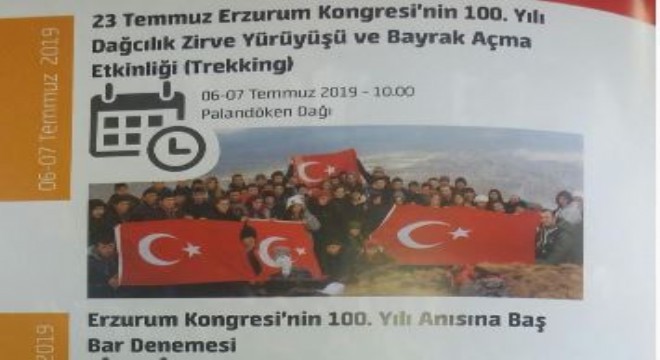 19 Mayıs-7 Ağustos tarihleri arasında düzenlenecek etkinlikler tüm kamu kurum ve kuruluşların katılımı ile gerçekleştirilecek. 23 Temmuz Erzurum Kongresi’nin 100.Yılında yapılacak etkinlikler kapsamında Erzurum İl Kültür ve Turizm Müdürlüğü tarafından 06 Temmuz Cumartesi günü, Havuzbaşı Kent Meydanında Saat:12:00‘de 100. yıl anısına bin barcının katılacağı baş bar denemesi aynı tarihte öğleden sonra saat:14:00 ‘de Cağ Kebap şöleni (Rekor Denemesi) yapılacak. Burada Milli Mücadelenin 100. Yılına atfen 919 kg. cağ tek cağda vurulup halka ikram edilecek.