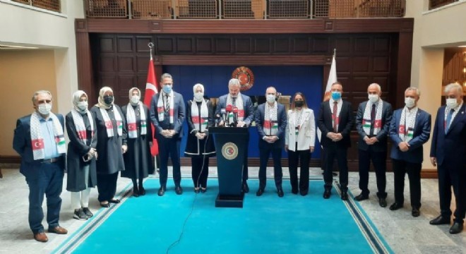 Turan, Meclisteki beş siyasi partinin İsrail’in saldırılarına karşı ortak bir tavır ve duyarlılık içerisinde olduğunu söyleyerek, “Türkiye parlamenterleri ve Filistin dostları olarak Ramazan ayının kutsiyetini ortadan kaldıran ve ibadet hürriyetini hedef alan bu pervasız, hain, alçak saldırıları unutmayacağız. İlk kıblemizi ve Kudüs’ü savunmaya devam edeceğiz. Gazi Meclisimizde grubu bulunan beş siyasi partimizde milletimizin hassasiyetini dikkate alarak İsrail’in saldırılarını kınamış, ülkemizin bu konuda ortak bir duyarlılık içinde olduğunu tüm dünyaya ilan etmiştir” ifadelerini kullandı.