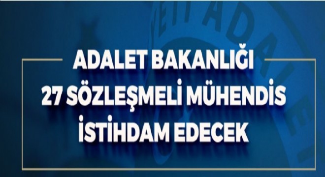 Adalet Bakanlığı, bilişim, elektronik, yazılım, enerji, haberleşme alanlarında 27 mühendis alımı yapacak.