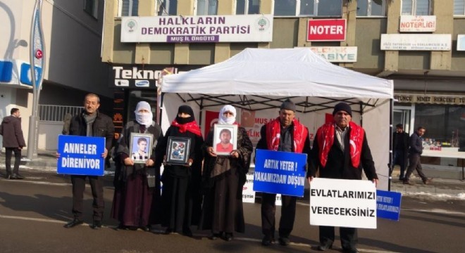Muş’ta, çocuklarının PKK terör örgütü tarafından kandırılarak kaçırılmasından HDP’yi sorumlu tutan ailelerin dondurucu soğuktaki evlat nöbeti devam ediyor.
