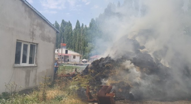 Pasinler ilçesi Ardıçlı Mahallesinde meydana gelen yangında yaklaşık bin adet ot balyası yandı.