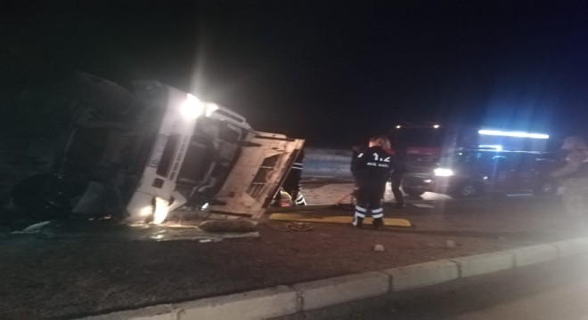Aşkale ilçesinde gece saatlerinde meydana gelen trafik kazasında refüje çarpan tır devrildi. Kazada 2 kişi yaralandı.