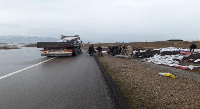 Bingöl’de kömür yüklü tırın devrilmesi sonucu meydana gelen kazada sürücü yaralandı.