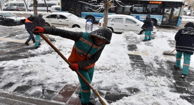 Büyükşehir Belediyesi’ne bağlı Kar Timleri, ulaşımda herhangi bir sıkıntının yaşanmaması için kentte karla mücadele çalışmasını 7/24 sürdürüyor.