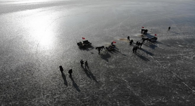 Buz tutan Kars Çıldır Gölü'ne yoğun ilgi