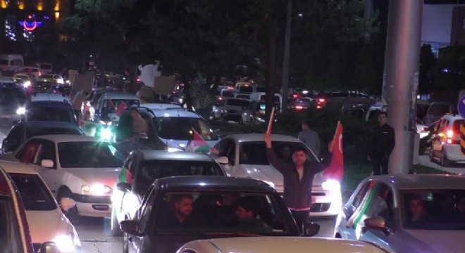 Erzurum’da gece yarısı Filistin için özgürlük konvoyu düzenlendi.