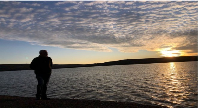 Gün batımıyla birlikte gökyüzünün kızıl rengini alan Kars Çayı adeta görsel şölen sundu.