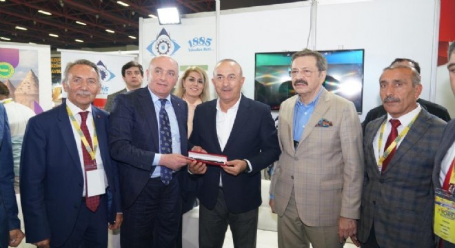 Başkan Özkalın, TOBB Yönetim Kurulu Başkanı ve Dünya Odalar ve Borsalar Birliği Başkanı M. Rifat Hisarcıklıoğlu ile Antalya Milletvekili Mevlüt Çavuşoğlu'na Oltu taşı tespih hediye etti.