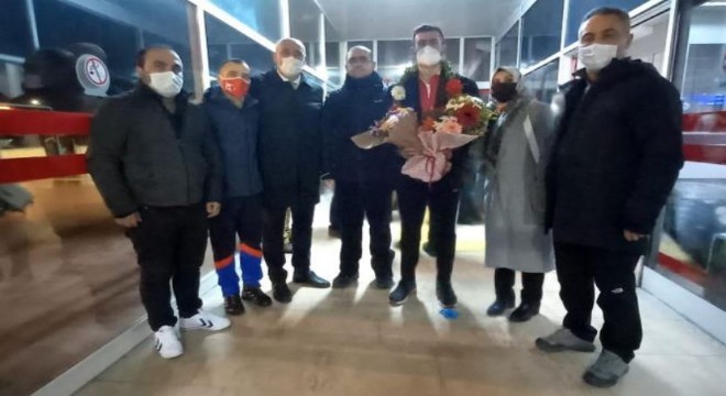 Bu arada havalimanındaki karşılama törenine antrenörler Muhammed Çelebi, Özkan Kırıveroğlu ile olimpiyat şampiyonu judocu Erkan Esenboğa da katıldı.