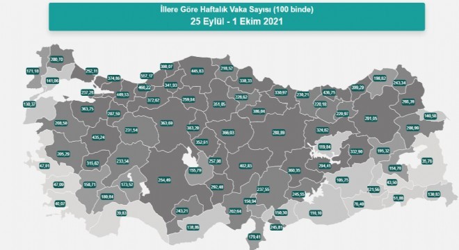 25 Eylül – 1 Ekim aralığında Türkiye illeri vaka sayısı sıralaması şöyle: