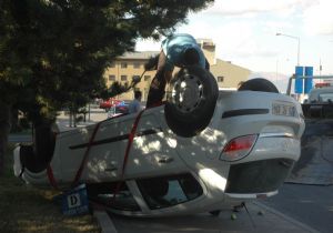 Erzurum'da, veteriner hekimin kullandığı otomobil dört takla atarak kaldırıma çıkarken, bu sırada oyun oynayan çocuklar kaçarak canlarını zor kurtardı.