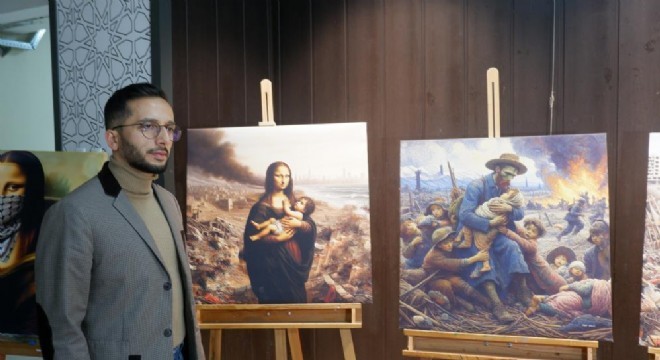 Erzurum Raci Alkır Güzel Sanatlar Lisesi Görsel Sanatlar Öğretmeni Yakup Dursun, İsrail'in Gazze'de uyguladığı soykırıma dikkat çekmek için dünyaca ünlü ressamların eserlerini yeniden tasarladı.