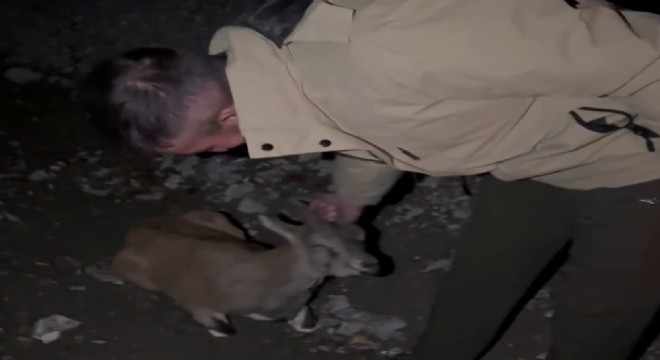 Uzundere ilçesinde yol kenarında yaralı halde bulunan yaban dağ keçisi, tedavi edilmek üzere yetkililere teslim edildi.