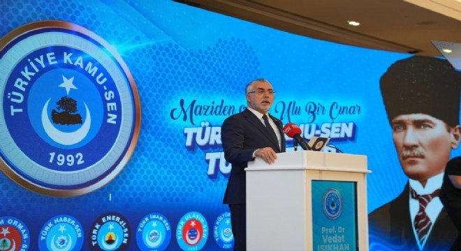 Çalışma ve Sosyal Güvenlik Bakanı Vedat Işıkhan, "Son 23 yılda kamuda sendikalaşma oranı yüzde 47'lerden yüzde 75'e ulaşmıştır. Sendikalı kamu personeli sayısı 650 binden 2,3 milyona ulaşmıştır" dedi.