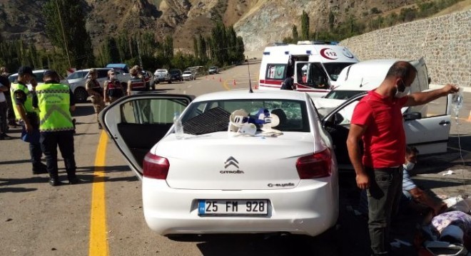 İspir ilçesinde meydana gelen trafik kazasında 7 kişi yaralandı. Feci kazada araçta sıkışan yaralılar kurtarma ekiplerince güçlükle çıkarıldı.