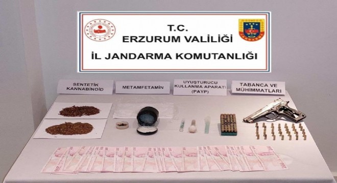 Erzurum İl Jandarma Komutanlığına bağlı Horasan ve Yakutiye İlçe Jandarma Komutanlığınca Horasan ve Yakutiye ilçesinde yapılan operasyonlarda; 428 gram metamfetamin, 18 gram bonzai, 2 adet uyuşturucu madde kullanma aparatı, 1 adet ruhsatsız tabanca ve 95 adet tabanca mermisi ele geçirildi.