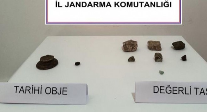Jandarma ekiplerince yapılan aramada, 1 tarihi eser olduğu değerlendirilen Obje (Şamdan Altlığı), 1 tarihi eser olduğu değerlendirilen yüzük, 7 kıymetli oldukları değerlendirilen taş, ele geçirilerek muhafaza altına alınırken, olayla ilgili olarak 1 kişi gözaltına alındı.