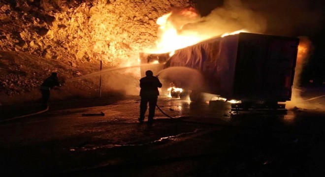 İran’dan Almanya’ya giden ve dorsesinde içerisinde kan torbaları bulunan tır alev alev yandı. Yaralanan sürücü hastaneye kaldırıldı.