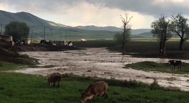 Erzurum’un Horasan ilçesinde ve köylerinde son zamanlarda etkili olan sağanak yağış birçok köyde sel felaketine neden oldu. Kükürtlü köyü ortasından geçen dere, aşırı yağıştan sonra taştı. Sel sularının gelişi cep telefonu tarafından görüntülendi.