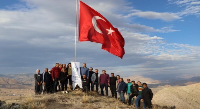 Zirveye ulaşan öğretmenler, bayrağı dikerek İstiklal Marşı’nı okudu. İlçe Milli Eğitim Müdürü İlhami Şahin ve beraberindekiler, şehit öğretmenler için dua etti.