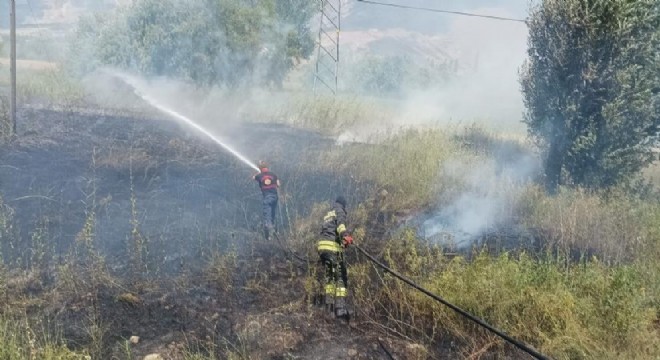 Erzincan’da kuru otların bulunduğu arazide çıkan örtü yangını itfaiye ekiplerinin müdahalesiyle büyümeden kontrol altına alındı.