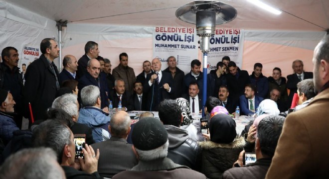 Erzurum’da Büyükşehir Belediyesi’nin imzasını taşıyan hizmet ve yatırımların saymakla bitmeyeceğini vurgulayan Başkan Mehmet Sekmen, “Bugün eğitimde, kültürde, sanatta, turizmde, ticarette, kısacası Erzurum’da yaşamın her alanında Büyükşehir Belediyesi’nin imzası var. Bunlar akşamdan sabaha olacak işler değil; arkasında çok ciddi bir planlama, hazırlık ve sağlam bir ekip var. Şu anda devam eden projelerimiz de var, startını vereceğimiz yeni yatırımlar da var. Yani bu süreç, aslında başlattığımız hizmet seferberliğinin devamı niteliğini taşıyor. Bu hizmet kervanının 31 Mart seçimleriyle yoluna devam etmesi gerekiyor. Bunun için de Dadaşların desteğine, Palandökenli kardeşlerimizin gücüne ihtiyacımız var. Mutlu, yaşanabilir, modern, marka ve memnuniyet düzeyi yüksek bir Erzurum hayalini hepimiz kuruyoruz. O halde bu ortak hedefe hep birlikte yürüyeceğiz, el ele vereceğiz, Erzurum düşlerimizi beraber gerçekleştireceğiz” şeklinde konuştu.
