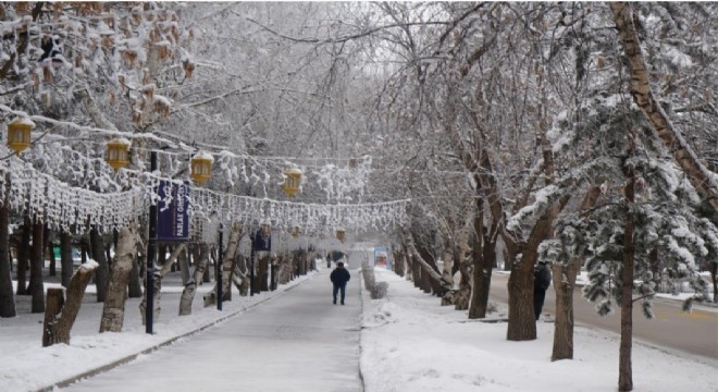 Erzurum'da gece saatlerinde başlayan kar yağışı kenti bir kez daha beyaza ...