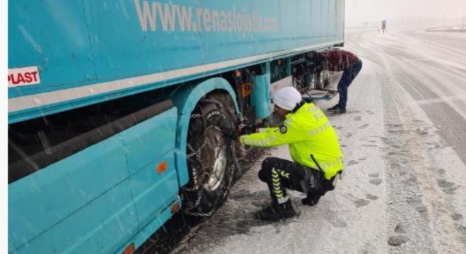 Bingöl’de kar yağışı etkili oldu. Bir anda bastıran kar yağışına hazırlıksız yakalanan sürücüler, araçlarıyla yolda kaldı. Sürücülerin imdadına ise polis ekipleri yetişti. Araçları iterek güvenli noktaya çeken ekipler, aynı zamanda zincir takmaya da yardımcı oldu.
