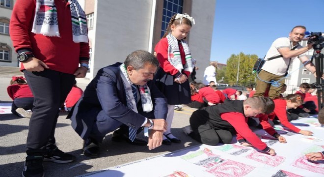 Milli Eğitim Bakanı Yusuf Tekin burada yaptığı konuşmada, "Evet biz eğitim metodolojisini konuşalım. Eğitimde yapay zekayı konuşalım, teknolojiyi konuşalım. Ama bütün bunlar niye yapıyoruz biz? Niye çocukları okula götürüyoruz? Niye eğitiyoruz? Kariyer canavarları mı yetiştirmek istiyoruz? Çıkar ve sadece kendi çıkarlarını düşünen vahşiler mi yetiştirmek istiyor Başkasını düşünmeyecekse insanı düşünmeyecekse, karşısındaki insanın hakkını, hukukunu düşünmeyecekse biz çocuklara niye eğitim veriyoruz arkadaşlar? Başkasına zarar verecek, insanlığı öldürecek silah yapacak, içinde insani değerleri olmayan bir varlığı biz ne yetiştiriyoruz? Eğitim sistemlerinin temel vasfı insan hakları, demokrasi, barış, dünyada beraber yaşama ile ilgili bir farkındalık oluşturmak. İnsanlara bunu verecek işleri yapmamız lazım. Bizim okullarımızda. Müfredatlarımızda en başa bunu yazmamız lazım. Bunu dememiz lazım. Demeliyiz ki biz insanlığa hizmet edecek insani değerleri önceleyecek ve bu dünyayı hepimiz için yaşanabilir kılacak bireyler yetiştirmemiz lazım. Sonra bunu nasıl yapacağımızı tartışabiliriz. Fakat asıl parametremizi asıl önermemizi unutursak o zaman o değerden yoksun ve bugün binlerce insanı, binlerce çocuğu öldüren vahşiler yetişmiş Oluyor. Kendi çıkarı için dünyanın neresinde olursa olsun insanları öldüren yapılar, siyasi iktidarlar ortaya çıkıyor. Bunlar önlemenin yolu bu şekilde adımlar atmak. Biz de Türkiye'yi maarif modeliyle aslında bir adım attık ve uluslararası arenada da savunurken evet diğer önermeleri de yani modern eğitim teknolojilerinin, eğitimdeki modern metodolojinin bize gerektirdiği bütün doneleri de eğitim sistemimize koyacağız, koyuyoruz Ama tüm bunları yaparken biz bunları niye yapıyoruz sorusunu da yukarıda ana paradigma olarak onu koyduk. Biz diyoruz ki biz bütün bunları insanlığa hizmet etmek için, bizim devlet geleneğimiz, bizim toplum geleneğimiz de bize bunu zaten dik geziyor. Böyle davranma dikte ediyor. Bugün de bütün bunları yaparken istediğimiz şey yani bugün Filistin'deki kardeşlerimizin davasına sahip çıkarken istediğimiz şey Türk devlet geleneğinin bize atalarımızın yadigar bıraktığı dünyada bir mazlum varsa onun derdine koşun. Onun yardımına koşun. Bu bizim için bir ata yadigarı bir husus. Ve bugün biz bunu yapıyoruz. Bir tarafta, bir taraftan da dünyada insanın ortak değerlerine sahip çıkacak bir konuşturmaya çalışıyoruz. Bu sebeple bugün okullarımızda bu etkinliği yapalım istedik. Yani yedi Ekim olduğu için. Bakın arkadaşlar bir yaşın çoğu bir yaşın altında olmak üzere. Yaklaşık bu iki yılda yaklaşık elli iki dakikada bir öldürüldü İsrail tarafından. Ya bu çocukların nasıl bir zararı olmuş bunların? Yaşam hakkı elinden alınanlar dışında sakat bırakılanlar, annesi, babası şehit edildiği için yetim kalanlar, öksüz kalanlar, eğitim öğretimi hakkından mahrum bırakılanlar hariç onları saymıyoruz, bilmiyoruz onları. Oradaki hasarın büyüklüğünden haberimiz yok. Peki insanlığın bu problemine biz sahip çıkmayacaksak, bakın dünyanın neresine giderseniz gidin konuşurken bir gün bir şey olursa Türkler bizi kurtarır. Türkler bizim hakkımızı savunur diyen bir mirasımız, bir geleneğimiz var bizim. Dolayısıyla biz de bugün bu farkındalığa destek olmak üzere okullarımızı böyle bir şey başlattık" diye konuştu.