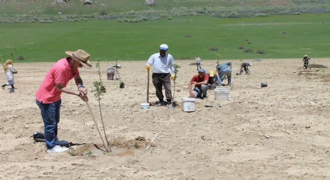 Söz konusu proje kapsamında üreticilere fidan, gübre, çevre ihata malzemeleri, damla sulama sistemi kurulumu ve teknik destek sağlanarak üç üreticiye; 10’ar dekardan, toplam 30 da, meyve bahçesi kuruldu. Projenin uygulama aşamasında ise; üreticilerin ve bahçe kurulacak arazilerin tespiti, çiftçi eğitim seminerleri, teknik personel eğitimi, bahçe ihatalarının yapılması, fidan dikimi ve damla sulama sistemlerinin kurulum çalışmaları planlanan programlar dahilinde tamamlandı.
