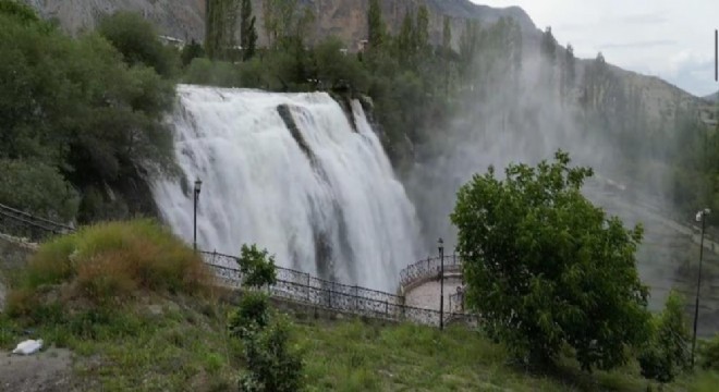 Tortum Şelalesi'ndeki su seviyesi artarken, güvenlik nedeniyle yürüyüş yolları kapatıldı.