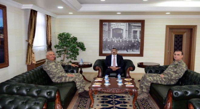 Erzurum 9. Kolordu Komutanı Tümgeneral Veli Tarakçı, Vali Mehmet Emin Bilmez’i ziyaret etti