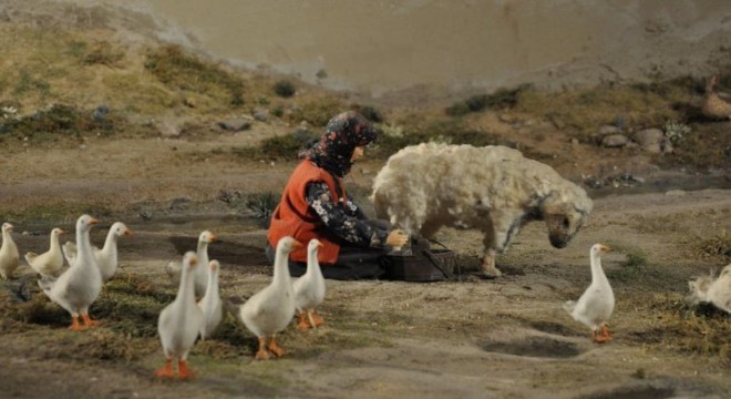 Kars Peynir Müzesi’nde ahır bölümü, içi süt dolu güğümler, yaylalardaki yaşam ve peynir yapımı, peynirin imalat serüveni anlatılırken, geçmişten günümüze peynir yapımında kullanılan araç ve gereçler de sergileniyor.