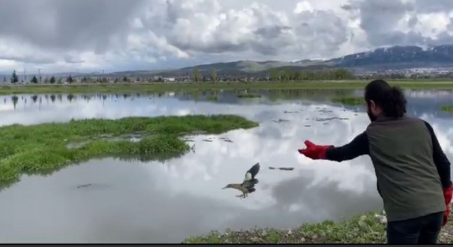 Erzurum merkezde esnaf tarafından bitkin düşen küçük balaban da bakım, beslemelerinin ardından doğal yaşam alanında yeniden kanat çırptı.