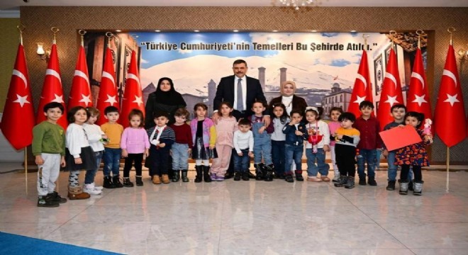 Erzurum Valisi Mustafa Çiftçi minik konuklarını toplantı salonunda ağırladı.
