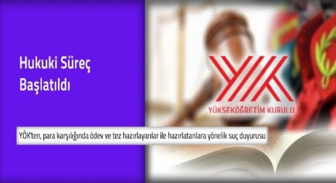 Para karşılığı tez ya da ödev yapılarak nitelikli dolandırıcılık ve suça yardım suçlarını işleyen internet siteleri ve buralardan yardım alarak üniversiteleri dolandırmaya teşebbüs edenler hakkında YÖK avukatları Ankara Adliyesi'ne suç duyurusunda bulundu. Bu kapsamda faaliyet gösteren danışmanlık/tez yazım ofislerinin yetkilileri ile bu yerlerden yardım alarak tez, bitirme projesi, ödev gibi bilimsel çalışma üreterek kamu kurumlarını aldatanlar hakkında Türk Ceza Kanunu'nun 39, 157 ve 158'inci maddeleri uyarınca kamu davası açılması istendi.