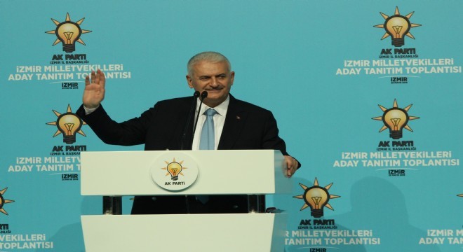 İzmir için “Güzellikler şehri İzmir, Ege’nin kalbi İzmir, efeler diyarı İzmir’in güzel insanları” diyen Başbakan Yıldırım, “Bugün bu salondaki coşku, İzmir’in 24 Haziran’a hazır olduğunu gösteriyor. ‘Güçlü meclis, güçlü hükümet, güçlü Türkiye’ diyerek, ‘durmak yok yola devam’ dediğinizi duyuyorum. İzmirli hemşehrilerimizin ‘yaparsa yine AK Parti yapar’ diyerek 24 Haziran sabahını iple çektiğini hissediyorum. Yüreğinizdeki coşku hep böyle olsun, hiç eksilmesin değerli kardeşlerim. İzmir’i ihmal eden Türkiye’yi ihmal etmiş olur. İzmir’i, Türkiye’nin kalkınmasının öncüsü olan bir şehir olarak gördük, ona göre çalıştık. İzmir hak ettiği yerde değil ama mutlaka hak ettiği yere gelecek. Bunlar değerli İzmirlilerin emin olmasını istiyorum. Durmak yok, durursak sadece sözümüzde dururuz. Biz bu günlere boş vaatlerle gelmedik. Hayal tacirliği ile gelmedik. Buraya samimiyetle, çalışarak, üreterek, milletimizin gönlüne girerek geldik. Milletimizin bugüne kadar başını öne eğdirmedik, yüzünü kara çıkarmadık, Allah’ın izni ile bundan sonra da çıkarmayacağız” dedi.