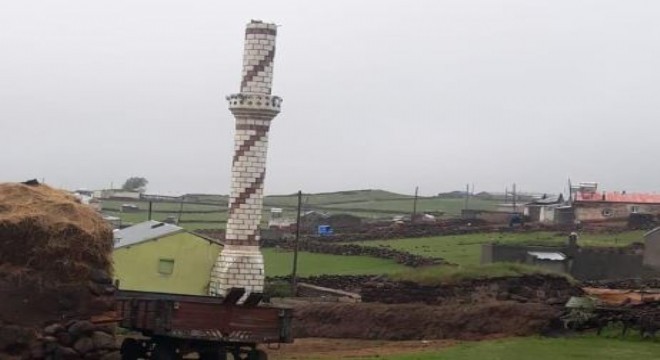 Kars'ın Digor ilçesi Mahirbey köyünde yıldırım camii minaresine düştü.