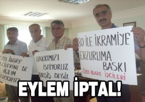 İl Özel İdaresi’nden ikramiye alacaklısı olan işçiler, Başbakan Erdoğan’ı pankart ve dövizlerle karşılama eyleminden vazgeçtiklerini açıkladılar. İşçiler adına bir açıklama yapan Yol-İş Sendikası Erzurum 2 Nolu Şube Başkanı Kıyas Daşkaya, ikramiye alacağı bulunan çalışanların; haklarının ödenmemesi gerekçesiyle bir süre önce İl Özel İdaresi’ne dava açtıklarına işaret ederek, bununla birlikte 13 Ağustos gününe özel olarak ayrıca bir de eylem planı hazırlamış olduklarını hatırlattı. Daşkaya, “Sayın Başbakan’ın Erzurum’a geleceği 13 Ağustos Cuma günü, geçeceği güzergah üzerinde tüm işçilerimiz pankart açacak ve bu durum protesto edilecekti. Fakat İl Özel İdaresi Genel Sekreterliği’nden dün yapılan açıklamada, Maliye Bakanlığı’ndan kaynak temin edildiği ve ikramiyelerin ödeneceği beyan edildi. Biz de bunun üzerine, 13 Ağustos Cuma günü, Sayın Başbakan’ı pankart ve dövizlerle karşılama eylemimizden vazgeçtik.” diye konuştu.