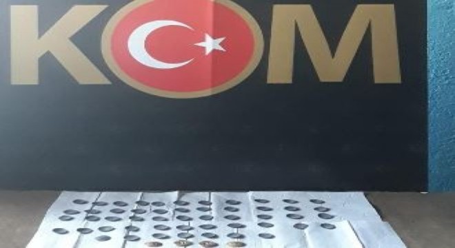Erzurum İl Emniyet Müdürlüğü İstihbarat ve KOM Şube Müdürlüğü ekiplerince yapılan uygulamada 55 adet sikke ele geçirildi.