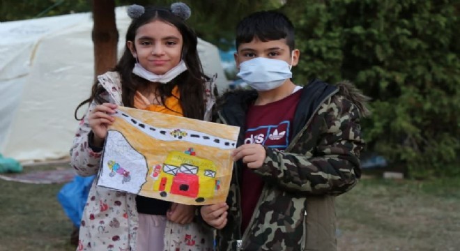 AFAD Erzurum ekibi tarafından 65 saat sonra enkazdan çıkarılan 3 yaşındaki Elif Perinçek için Kayra ve Saltuk kardeşler resim yaparak ekiplere teşekkür etti.