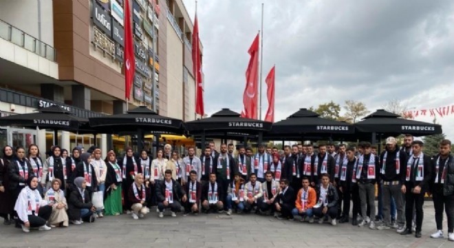 Erzurum AK Parti Gençlik Kolları, Erzurum'daki Starbucks şubesinde Filistin atkılarıyla yarım saatlik yer kapatma protestosu yaptı.