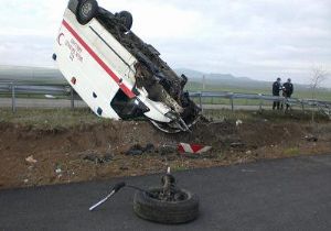 Kars Kars Devlet Hastanesi’nden Erzurum’a gece hasta nakli yapan 36 EH 726 plakalı ambulans, geri dönerken Cumhuriyet köyü mevkiinde direksiyon hakimiyetini kaybederek yol kenarında bulanan bariyerlere çarparak takla attı. Ambulansta bulunun 1′i şoför 3 kişi yaralandı. Yaralılar başka bir ambulansla Kars Devlet Hastanesi’ne kaldırılarak tedavi altına alındı.