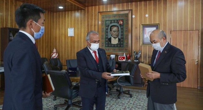 Moğolistan’ın Ankara Büyükelçisi Bold Radvan, Atatürk Üniversitesi Rektörü Prof. Dr. Ömer Çomaklı’yı ziyaret etti.