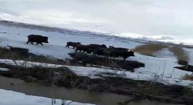 Köylerinden Erzurum’a gitmek için yola çıkan vatandaşlar bir anda karşılarında onlarca domuzun olduğu sürüyle karşılaştı. O anları cep telefonuyla kaydeden vatandaşların zaman zaman tedirgin oldukları da gözlendi. Domuz sürüsü de bir süre bekledikten sonra arazide kayıplara karıştı.