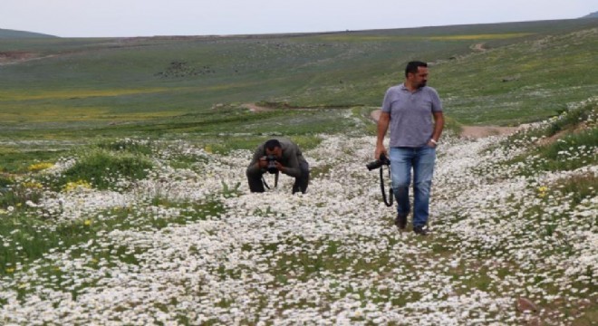Allahu ekber dağının zirvesinde kar ve sis kaplarken etekleri papatya tarlası gibi. Rengarenk çiçek florası olan Allahu ekber dağını doğa fotoğrafçıları bol bol fotoğrafladılar.
